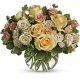 - This warm yellow assortment of lilies, roses, alstroemeria and assorted greens are presented in a lovely yellow vase that’s tied with a yellow bow.